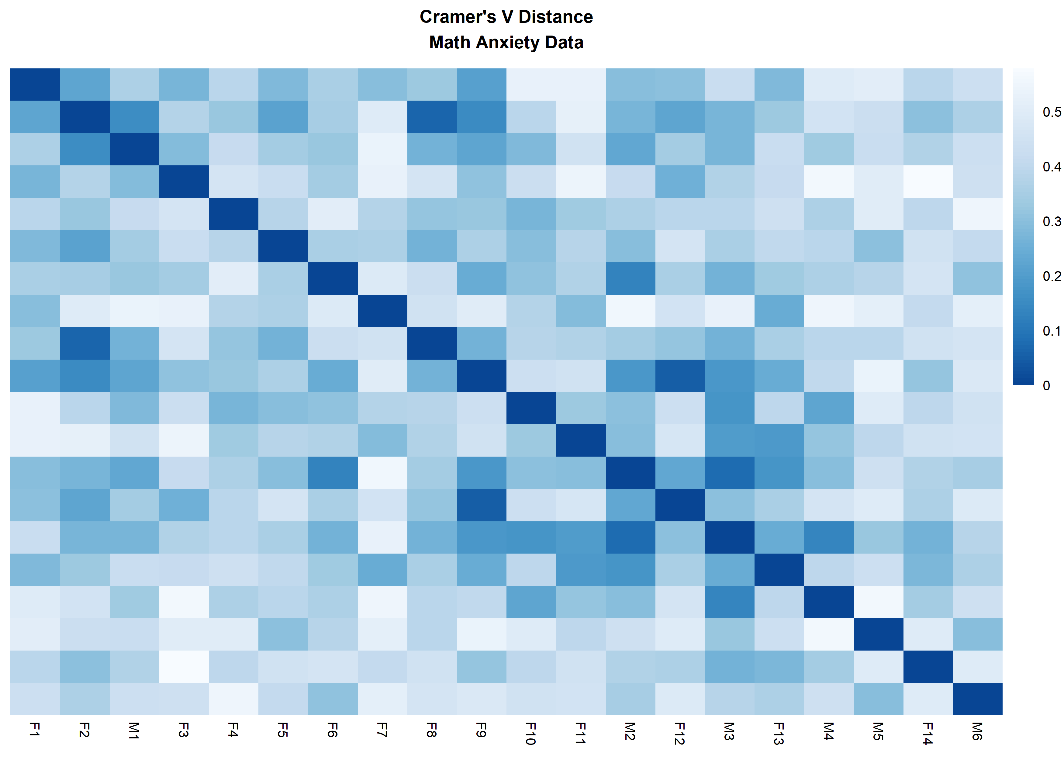 main = "Cramer's V Distance\nMath Anxiety Data",