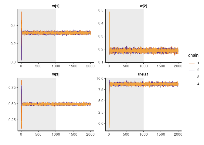 #> w[3]   0.49       0 0.01 0.47 0.49 0.49 0.50  0.51  6125    1