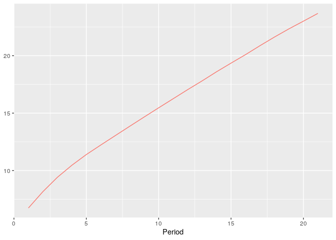 simdata <- simulate_hindex(runs = 5, n = 200, periods = 20, coauthors = 3, distr_initial_papers = 'poisson', dpapers_pois_lambda = 10, distr_citations = 'poisson', dcitations_mean = 5, dcitations_peak = 3, alpha_share = .33)