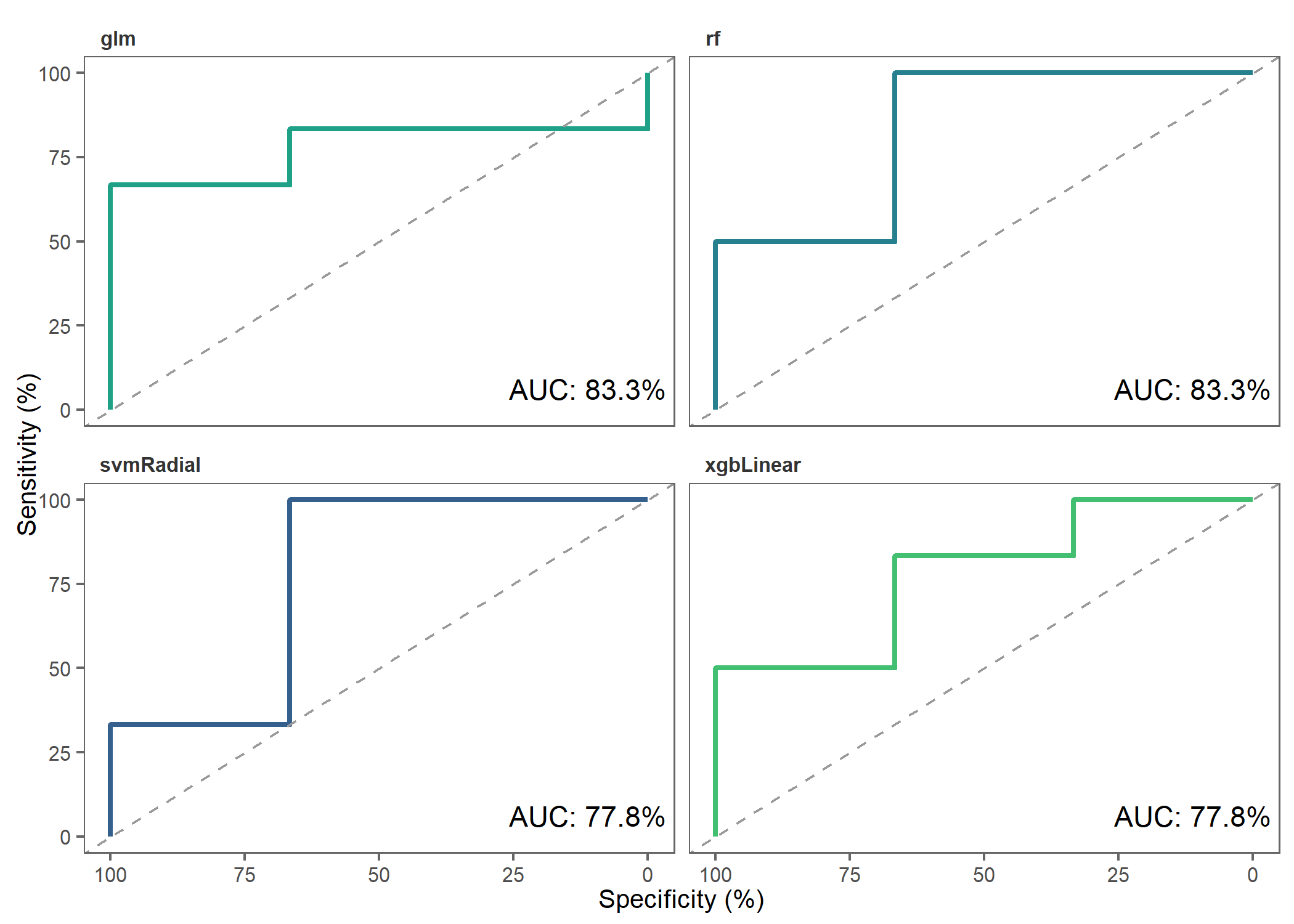 )Let’s make ROC plots to check how the different models performed.