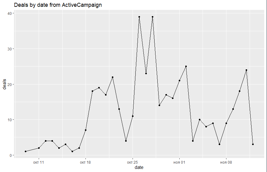 labs(title = 'Deals by date from ActiveCampaign')