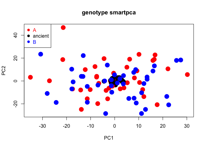 my_groups[my_ancient] <- "ancient"; cols = c("red", "black", "blue")