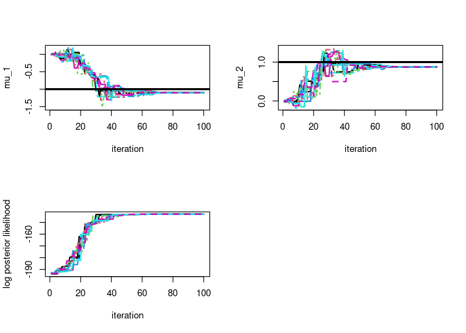 post <- DEMCMC(LogPostLike=LogPostLikeExample,